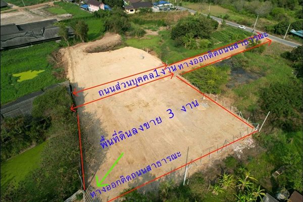 ที่ดินเปล่าขาย 3 งาน มีทางเข้าออก 2 ทาง